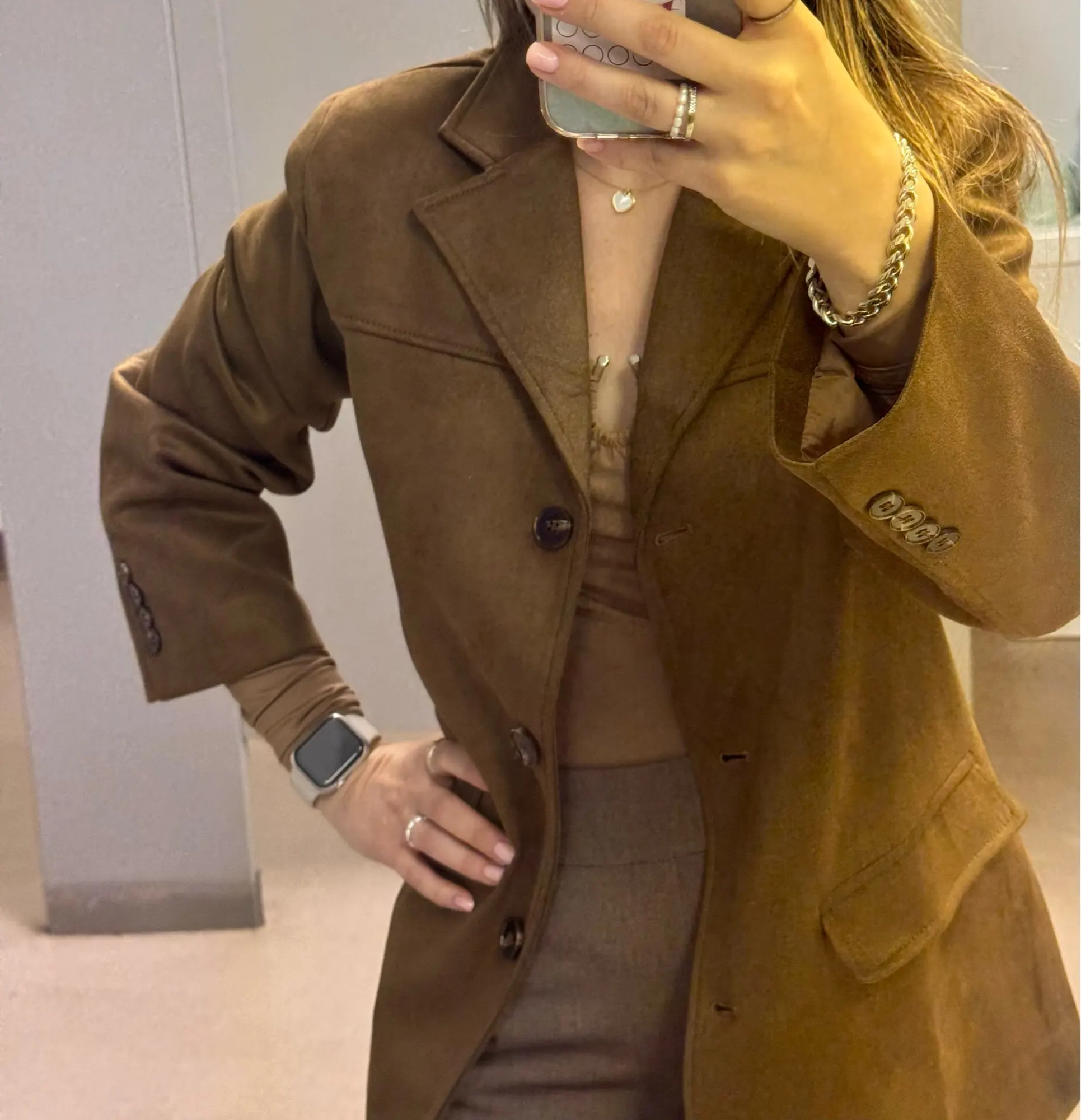 Pensé pour le confort et la féminité, ce tailleur vous garantit un tombé impeccable et une allure affirmée. Les matières sont utilisées douces au toucher et agréables à porter tout au long de la journée. Cet ensemble incarne la mode contemporaine pour les femmes qui souhaitent exprimer leur caractère sans compromis sur l'élégance.